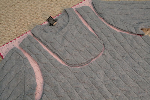 Шаг 1: Вырежьте у свитера горловину и отрежьте рукава, чтобы получилась форма маечки.