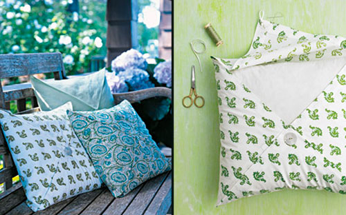 С наступлением весны украсьте все диваны и кресла в своем доме яркими симпатичными подушечками. В этом вам помогут тряпичные салфетки или простые кусочки ткани – главное, чтобы они были достаточных размеров. Прекрасно подойдут салфетки, которых от комплекта осталось всего пара штук или же те, которые вам подарили, но они совершенно не вписываются в дизайн вашей кухни. Или же вы можете просто купить ткань, которая вам понравится и соорудить набор одинаковых подушечек.