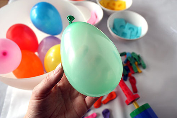 Чтобы извлечь шарик, пробейте булавкой в яичке маленькую дырочку возле узелка и подождите, пока шарик сдуется. Проткнув шарик, не вынимайте булавку, чтобы его было легче вытянуть. Если же вы таки забыли об этом, и шарик упал на дно яйца, не переживайте – вы сможете вытащить его перед тем, как помещать в яйцо сюрпризы.