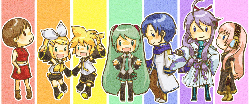 Несмотря на то, что в Украине тема вокалоидов с каждым днем набирает популярности, почему-то на наших источниках довольно трудно найти информацию об этих анимешных исполнителях. И это не говоря уже о картинках, обоях и аватарках с любимыми персонажами. А посему, предлагаю вашему вниманию еще одну прикольную подборку оригинальных, ярких и очень красивых аватаров с вокалоидами Кайто (Kaito), Гуми Мегпоид (Gumi Megpoid), Микки Кайхатсу (Miki Kaihatsu), Хатсуне Мику (Hatsune Miku), Мегурине Лука (Megurine Luka), Кагамине Рин и Лен (Kagamine Rin & Len).