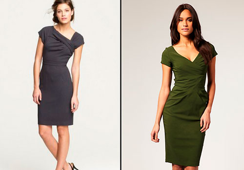 3. Акцент на груди. Думаю, все понимают, что глубокое декольте на работе – это выглядит не только глупо, но и вульгарно. Если вы хотите сделать акцент на груди, не обязательно ее открывать – стильнные складочки и драпировка аккуратно обратят внимание на верхнюю часть вашего платьица. Девушкам с широкими бедрами стоит закончить платье простой прямой юбкой; если же у вас бедра узкие – сделать их более фигуристыми поможет юбка «бочонок».