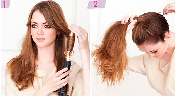 Итак, немного завейте волосы, если они у вас абсолютно прямые. Если же ваши волосы и так вьются, на этом вы сэкономите еще немного времени. Соберите волосы в выокий хвост и завяжите тонкой резиночкой.