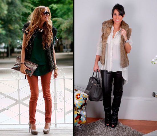 Замечательно смотрится меховая жилетка в комбинации с узкими брюками и верхом свободного покроя, будь то блузка или туничка. Однако обувь в таком случае лучше выбирать на каблуке – он придаст вашему силуэту изящности, иначе же вы можете выглядеть не такой стройной и высокой.