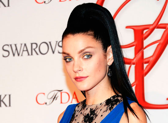 Длинноволосым барышням подает пример Джессика Стэм/ Jessica Stam. Если у вас длинные черные волосы, из них получится прекрасный хвост в стиле ведьмочки Эльвиры. Выровняйте волосы и соберите их в высокий конский хвост. Сам хвостик разложите так, чтобы он даже немного заходил на уши.