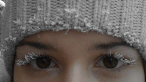 В тот день я забыла надеть часы, а за временем приходилось следить, дабы не опоздать на работу. Так что, я достала свой Iphone, чтобы глянуть который час и случайно увидела своё отражение, тогда мне сразу стало ясно, с чего это прохожие уделяли столько внимания моей персоне. Мороз, буквально, разрисовал моё лицо тоже! Я даже сфотографировала себя на Iphone.