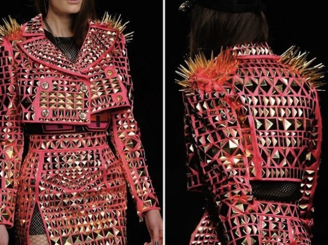 Шипы – это обязательная деталь женского гардероба осень-зима 2012-2013. Самой популярной вещью, которая украшается шипами, является кожаная куртка. Модно будут выглядеть и вещи из джинсовой ткани, или вещи с потертой, рваной ткани. Также шипы украсят короткие юбки, шорты. Куртка, жакет или пиджак будет хорошо сочетаться с летящей плиссированной юбкой нейтральных оттенков, с легинсами из лайкры.