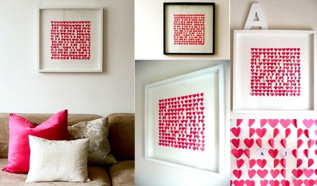 В последнее время в дизайне становиться модным декор с бабочками, котами. Но есть поклонники декора, где используется сердце. Это могут быть как маленькие сердечки, так и большие сердца. Этот вид декора подходит для эффектного оформления спальни, детской. К примеру, можно самому изготовить крошечные сердечки и выложить из них огромное сердце. Эффектно такое панно будет смотреться вместо картины в спальне.