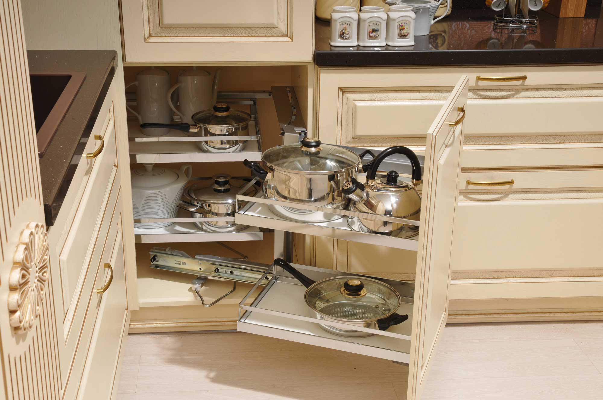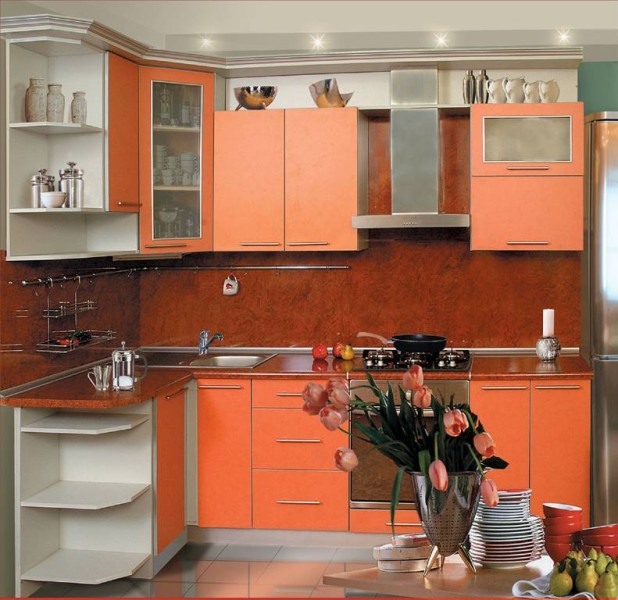 Имеется в виду не только мебель, а и планировка, размещение всевозможных мелочей. Очень удобно, когда все находится в порядке, и все под рукой. Поэтому вполне логично купить мебель со всевозможными открывающимися местами для хранения посуды, специй и приправ.