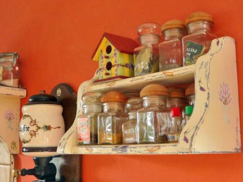 Очень кстати также кухонные аксессуары: подвесные контейнеры, держатели или вешалки для полотенец (как обыкновенных, так и бумажных), крючки для половника, лопаток. Также можно разнообразить кухню, разместив на ней, к примеру, сувениры, привезенные с разных стран или презенты от друзей, дорогие вина или коньяк.