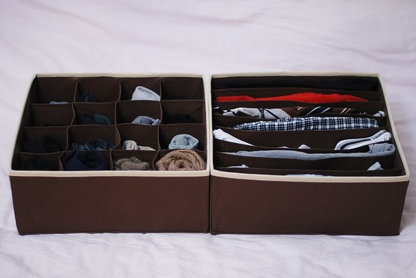 Есть также замечательные коробки для хранения мужского белья. В ней можно хранить также носки и галстуки. И ваш муж не будет постоянно тревожить вас о том, чтобы вы дали ему необходимую вещь.