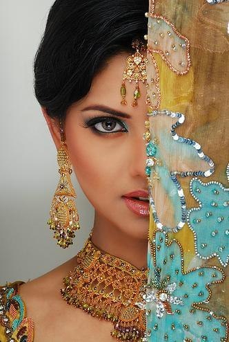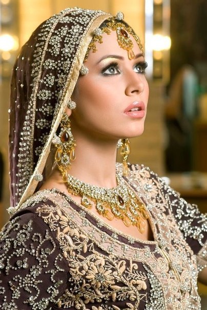 В образе невесты должны быть также массивные серьги, которые заменяют наши маленькие сережки. Это главный акцент наряда. На руках и ногах должно быть множество браслетов. А руки должны быть расписаны хной. Чем сложнее и замысловатей узор, тем красивее считается невеста.