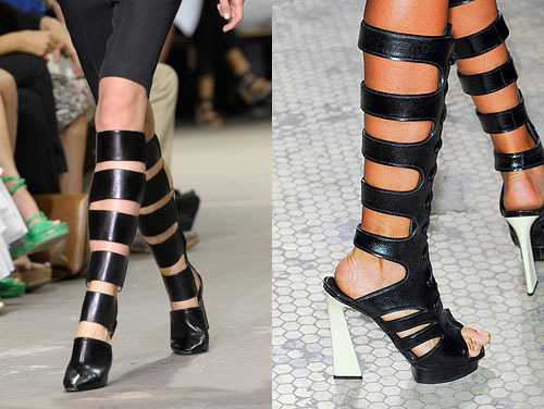 Сапоги – чулки. Они в моде уже достаточно длительное время. И как вы сами можете убедиться, все еще популярны. Длина такой обуви должна быть до колен. Она может быть выполнена из ремешков разной ширины, либо сделана сеточкой. В таких сапогах – чулках ножка дышит, в них удобно, а устойчивый каблук или платформа способна обеспечить вам комфорт.