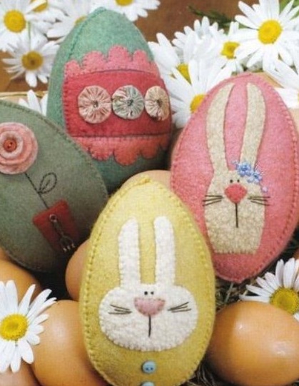 Также многие рукодельницы и швеи любят такой материал, как фетр. Из него можно пошить яйца, наполнить силиконом и декорировать пуговицами, различным декором.