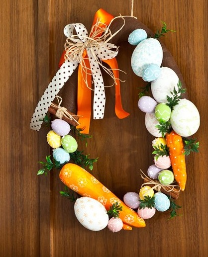 Либо сделать вот такой оригинальный пасхальный венок для входных дверей. Ваши соседи и прохожие будут видеть, насколько хорошо вы подготовились к празднику.