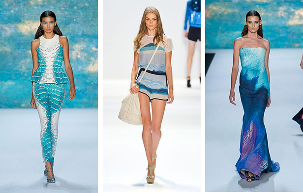 А если вы собираетесь в увлекательное путешествие, то «морской гардероб» вам просто незаменим! Это может быть платье бирюзового цвета, либо тонкий летний сарафан с принтом морского горизонта, либо платье с морскими волнами. В этом летнем сезоне 2013 года морские тенденции достаточно разнообразны.