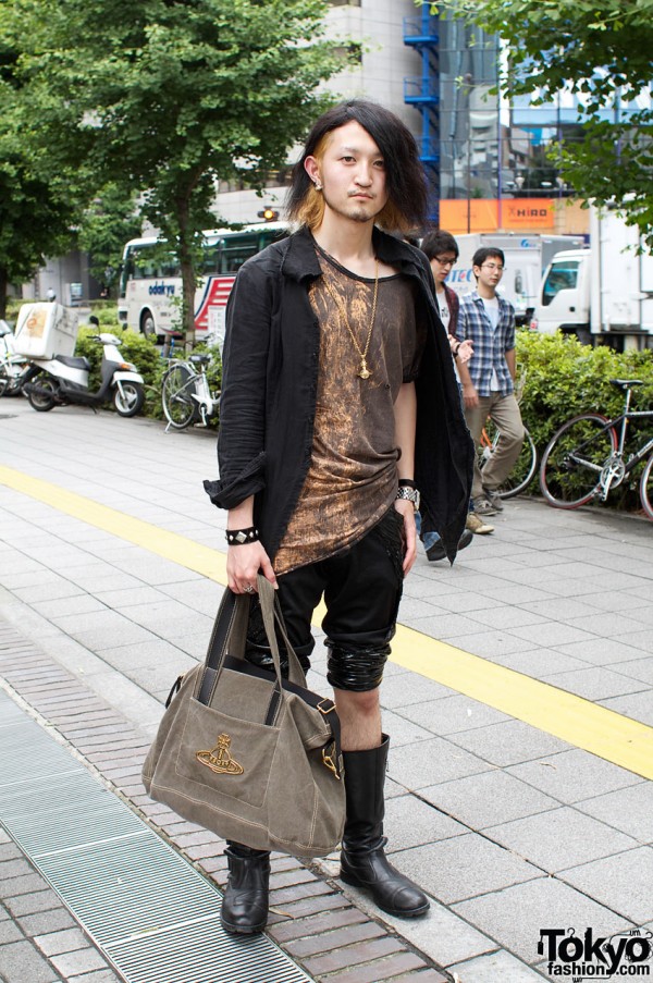 И последний модник на сегодня от района Shinjuku. Парень совмещает футболку и рубашку с распродажи с сапогами от Tokyo Bopper.