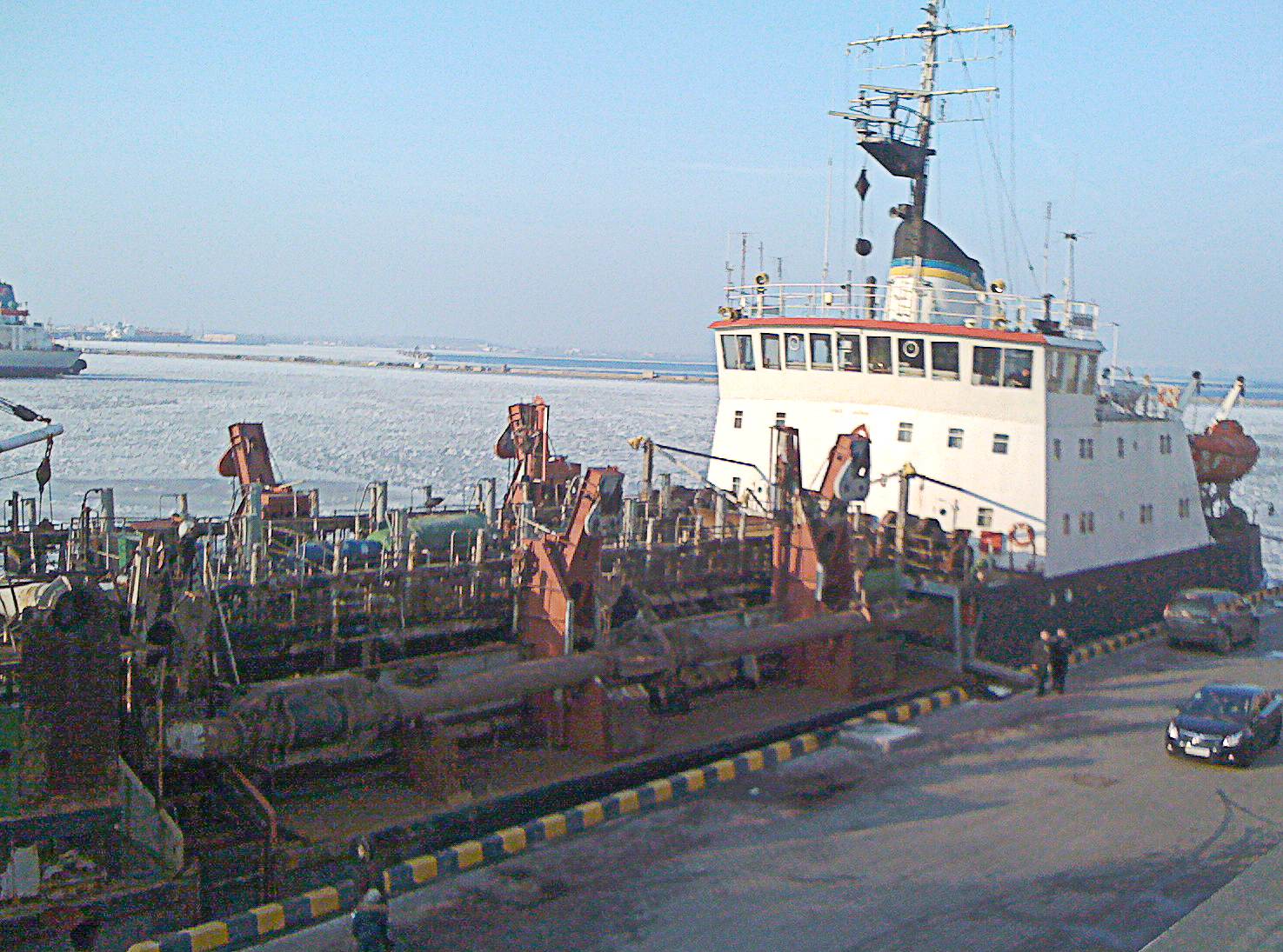 Отобедав, мы двинули в морской порт. Одесса всё же. Надо на море поглазеть. Море, кстати, подзамёрзло.