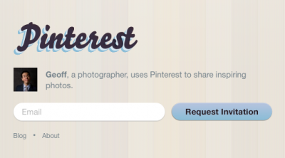 Теперь о деле. Во первых, чтобы зарегестрироваться на сайте вашей мечты, вы уже должны иметь аккаунт на Facebook или Twitter. Только тогда вы сможете получить заветный инвайт. Он прийдет на почту в течении нескольких дней. Да-да просто так туда не попасть! Ну или возможно у вас имеется друг, который уже вовсю пользует прелести Pinterest. У этого самого друга (таким же станете и вы после регистрации) есть возможность раздать ПЯТЬ инвайтов.