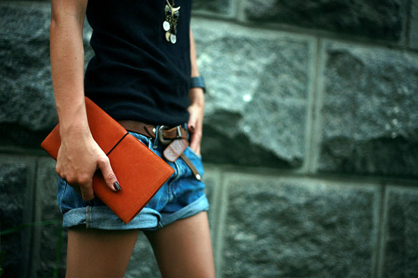 А теперь поговорим и о самих книжках. Они отличаются от остальных тем, что обложка Manekibook сделана из куска толстой кожи, которая ни к чему не приклеена. Записная книжка закрывается и оборачивается резиночкой, которую можно надеть как вертикально, так и горизонтально.