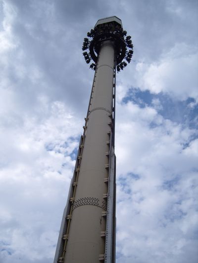 башня вольного падения (на самом верху вышки кресла слегка опускают таким образом чтобы вы смотрели лицом вниз, и получается что вы летите вниз, как будто, плашмя на встречу асфальту (капец как страшно!))