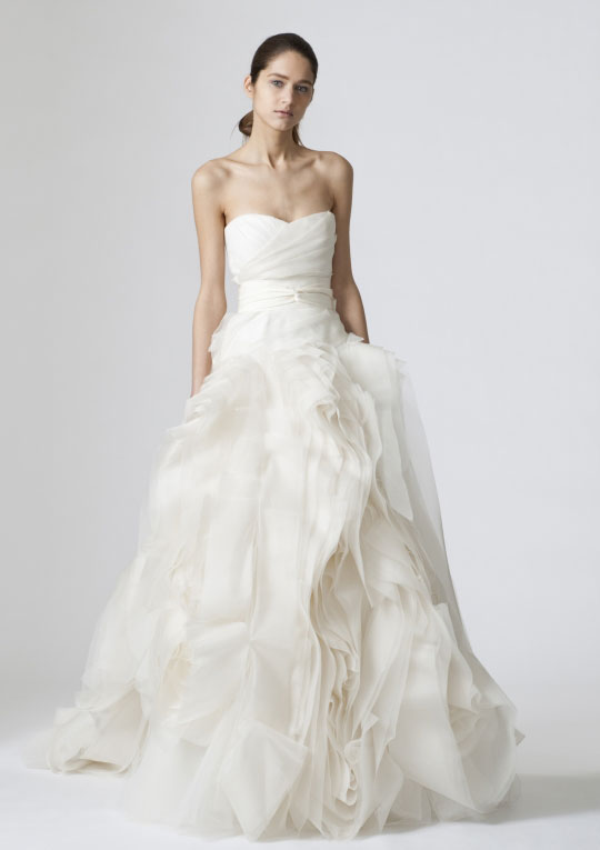 Автором первых двух платьев стала всемирно популярный дизайнер Вера Вонг (Vera Wang), они относятся к ее осенней коллекции 2011 года. Понятное дело, что эти платья особо хорошо подойдут худеньким девушкам, ведь именно на них Вера и шьет свои платья.