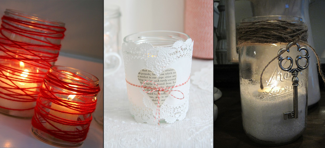 Этот способ предоставляет вашей фантазии полную свободу. Для украшения светильников вы можете использовать самые разнообразные кружевные ткани, салфетки, пуговицы, ленточки, шпагат, мешковину, ягоды и так далее, и тому подобное.