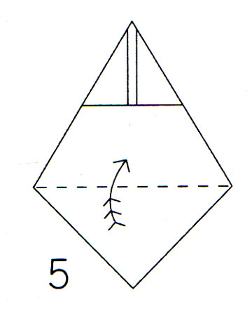 Чтобы получить картинку выше, просто поверните фигурку, полученную после 4 шагов вверх ногами и тыльной стороной к себе. Теперь сложите получившийся ромбик вдоль горизонтальной пунктирной линии.