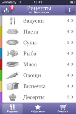 6) Belonika рецепты – это моё любимое приложение. Подборка рецептов с соответствующими фотографиями различных видов блюд (супы, салаты, мясо, рыба и десерты). Очень полезно, особенно, учитывая, что рецепты достаточно оригинальные.