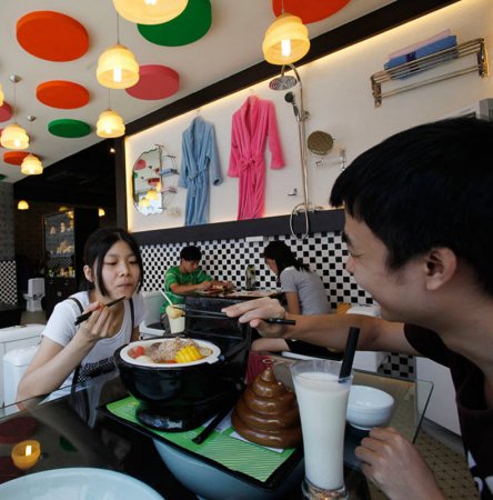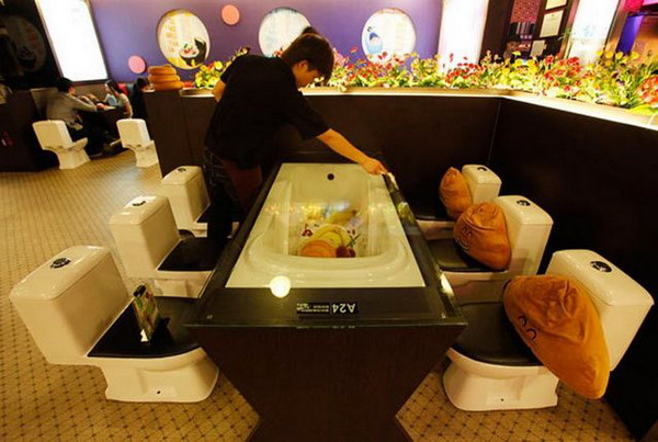 Кстати, некоторые люди целый культ из унитазов делают. Как вам идея рестораничка, в котором вместо стульев унитазы, а их миниатюрные копии – вместо тарелок для десертов? По мне так это тотальный капец недоразумение какое-то! А некоторые на этом ещё и деньги зарабатывают (хотя, наверное, если бы меня пригласили на свидание в такое заведение, я бы вряд ли испытала радостные чувства).