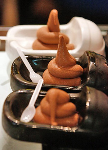 Особенно «аппетитно» выглядят шоколадные десерты в тарелочках в виде фаянсовых унитазов (я бы такое точно пробовать не стала!).