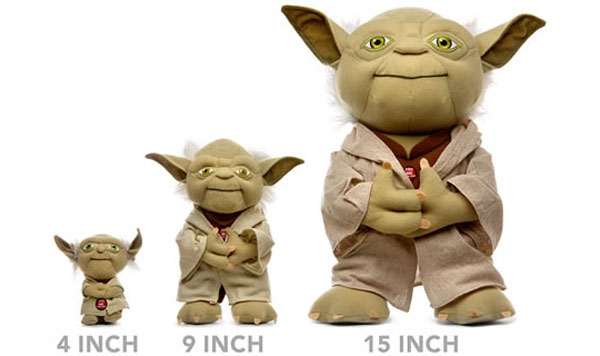 Если вам интересно, такую игрушку сейчас можно купить онлайн на Thinkgeek.com. Там они продаются в трех размерах: 4 дюйма, 9 дюймов и 15 дюймов. Стоимость, конечно же, тоже варьируется от 9 до 40 баксов. Вы сможете выбрать одного из четырех персонажей – Дарта Вейдера, Чубакку, Мастера Йоду или забавного робота R2D2. Соответственно, Дарт Вейдер будет также зловеще дышать (и, как положено, говорить «Люк, я твой отец…»), Чубакка – завывать, R2D2 – «булькать» по-своему, а Мастер Йода – бросаться своими джедайскими фразами.