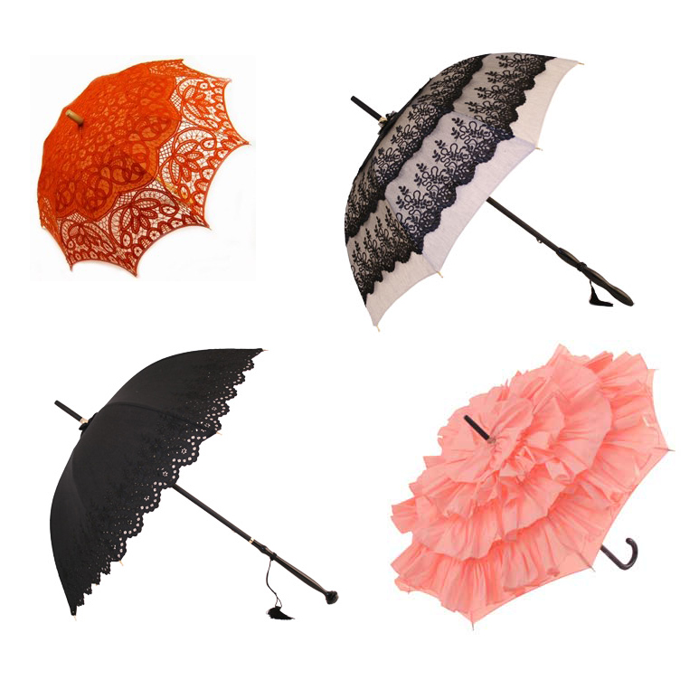 Зонты, предназначенные для прогулок под солнцем, часто делают очень-очень нежными. Они украшаются бантиками, рюшечками и кружавчиками. Конечно же, для того, чтобы придать вам вид нежной и хрупкой леди.