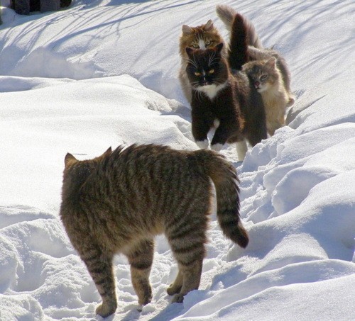 Ну и, конечно же, коты в естественной среде обитания. В стае. Уличные бойцы, так сказать. Смотрятся внушительно и грозно.