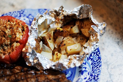Я, для большего удобства, каждую картофелину как в конвертике, оставляю в своей фольге. Тогда и масло не вытекает и на тарелки удобней выкладывать.