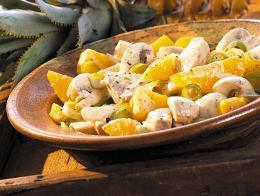 Вот выискала рецепт интересного салатика. Так, что если у вас предвидится какое-либо празднество или тусовка, вполне можете угостить гостей этим блюдом.