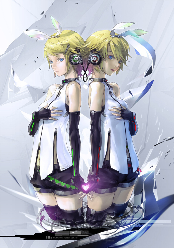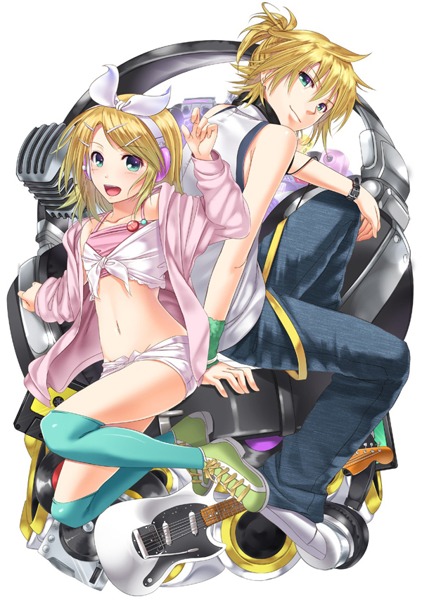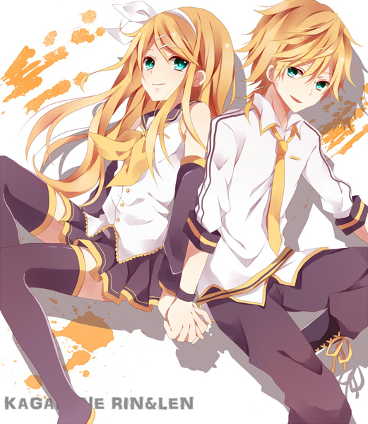 А я вот нашла замечательные яркие и красочные обои с нашими любимыми близняшками и теперь спешу поделиться с вами. Качайте и пусть Лен и Рин Кагамине радуют вас.