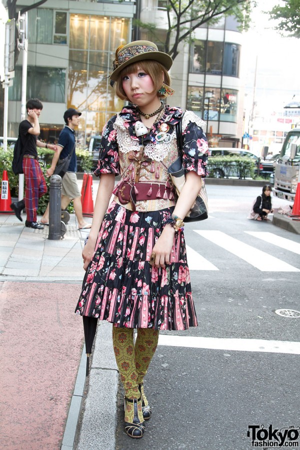 Следующую модницу зовут Хери. Тут у нас расцветает винтаж. Винтажный корсет с кистями одет на цветастое платье.