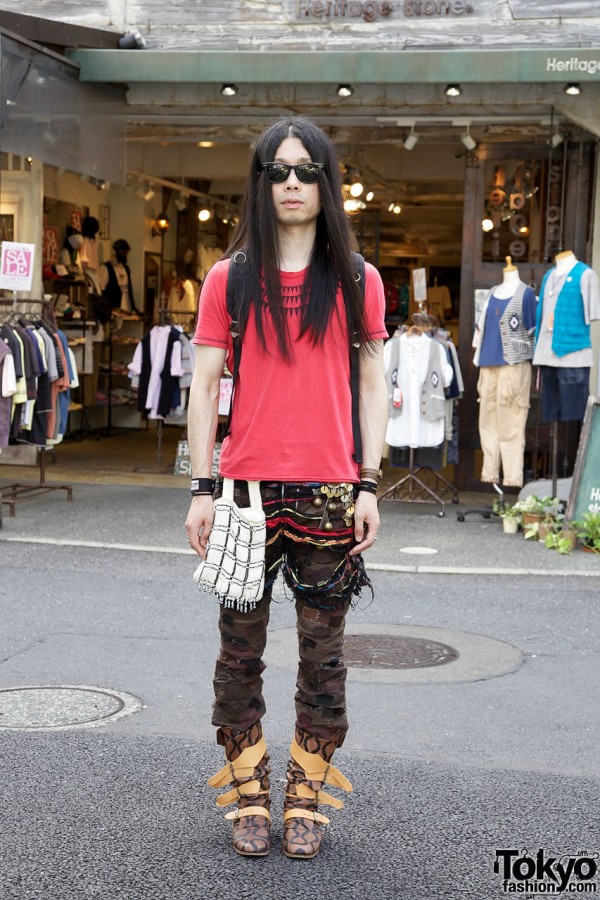 Мужчин сегодня представляет 27-летний модник из Хараюку. Он одет в красную футболку и штаны в латочку. Особенно бросаются в глаза его сапоги от Вивьен Вествуд (Vivienne Westwood).