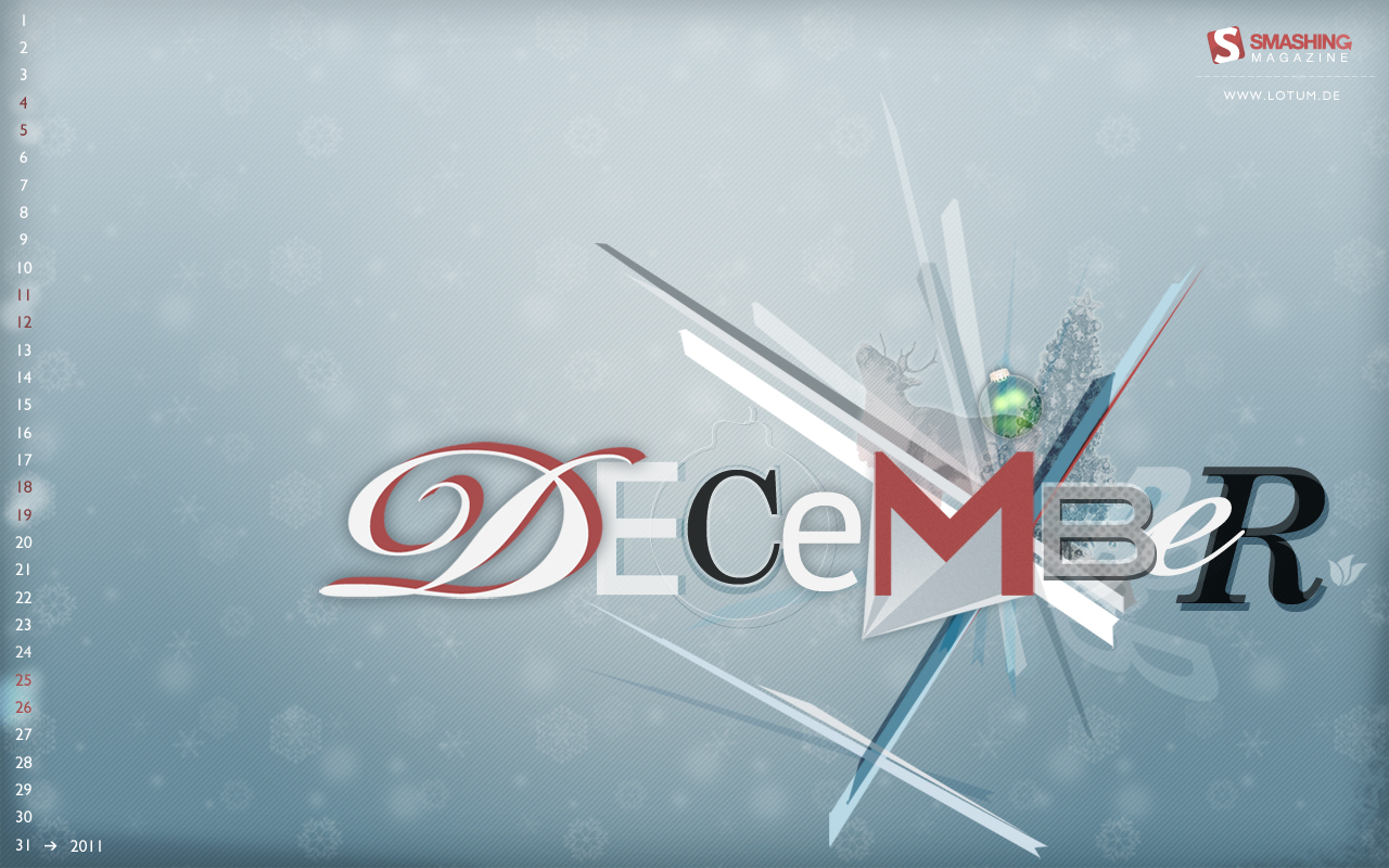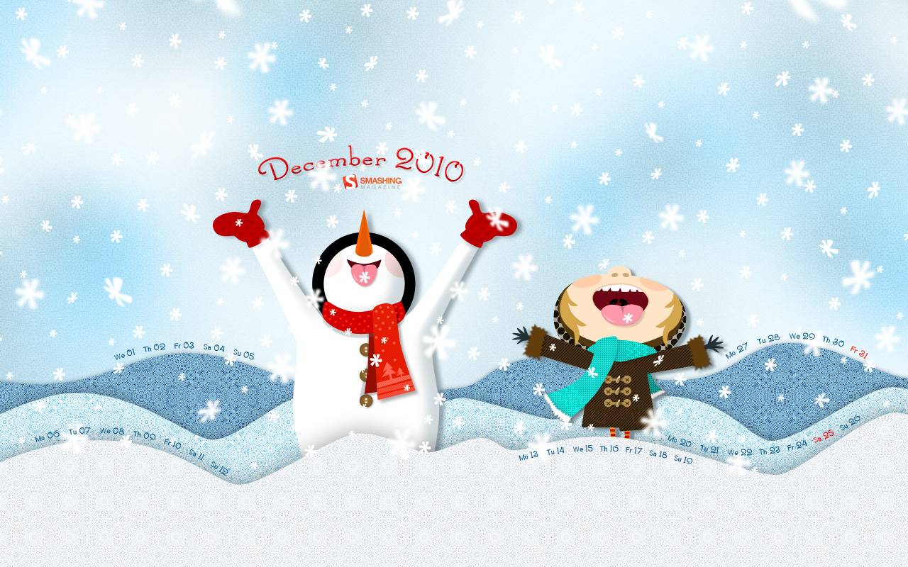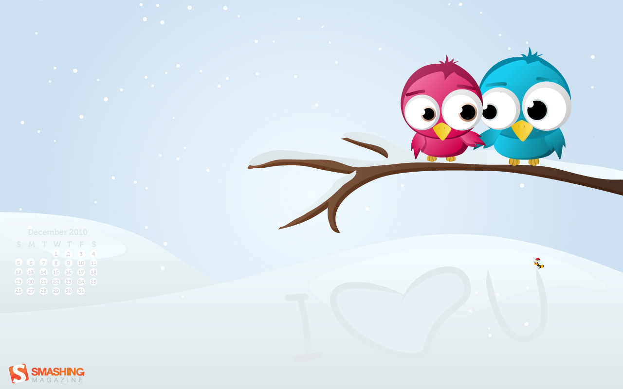 Как-то странно получается – с приближением новогодних праздников весь снег потаял… Хочешь – не хочешь, а все это зимнее и предновогоднее настроение понемногу пропадает или становится более унылым. От гнусной слякоти спасает только уютный дом, украшенный всякими новогодними штуками. Так пускай и ваш компьютер радует вас красивыми зимними картинками!! Выкладываю хорошую подборку зимних, новогодних и рождественских обоев на рабочий стол компьютера с календарем на декабрь 2010.