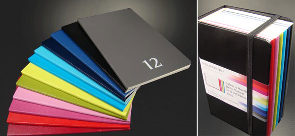 Любителям тетраток также стоит обратить внимание на серию Moleskine Volant. Это нелинованные записные книжки с английским алфавитом. У нас они продаются в четырех основных цветах: черном, темном синем, розовом и голубом. Эти книжечки можно покупать не только поштучно. Мне очень нравится комплект из 12 разноцветных тетрадок карманного размера (хватит на весь 2011 год).