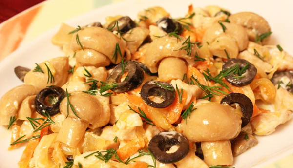 Вот выискала рецепт интересного салатика. Так, что если у вас предвидится какое-либо празднество или тусовка, вполне можете угостить гостей этим блюдом.